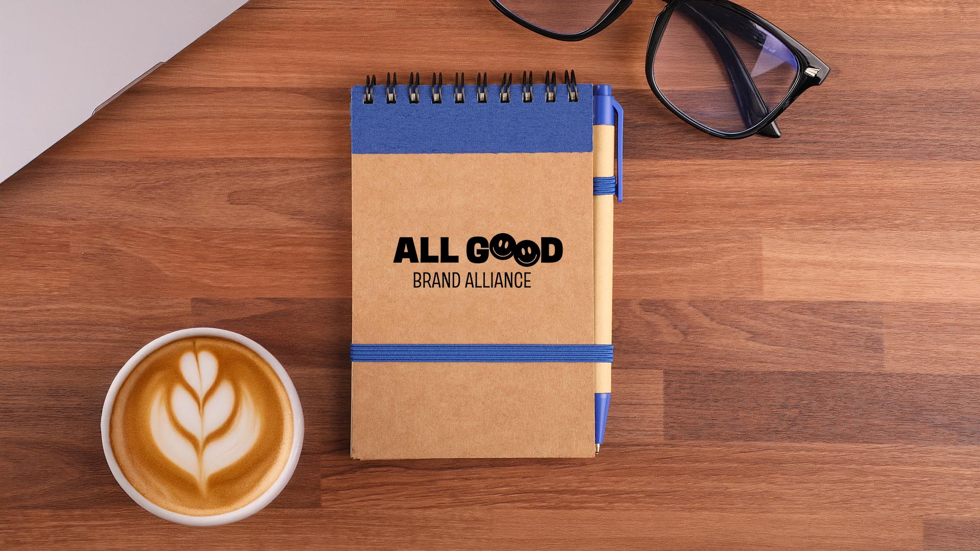 Keep ideas close at hand with the 3" x 5" Eco Jotter with Pen, a compact and sustainable solution for everyday note-taking. Designed with convenience in mind, it features a matching elastic band closure and pen loop, plus a coordinating pen made from recycled paper with durable plastic accents. The classic kraft paper cover gives it a natural, eco-friendly look, while 70 lined sheets provide plenty of space for quick reminders, lists, and on-the-go notes.