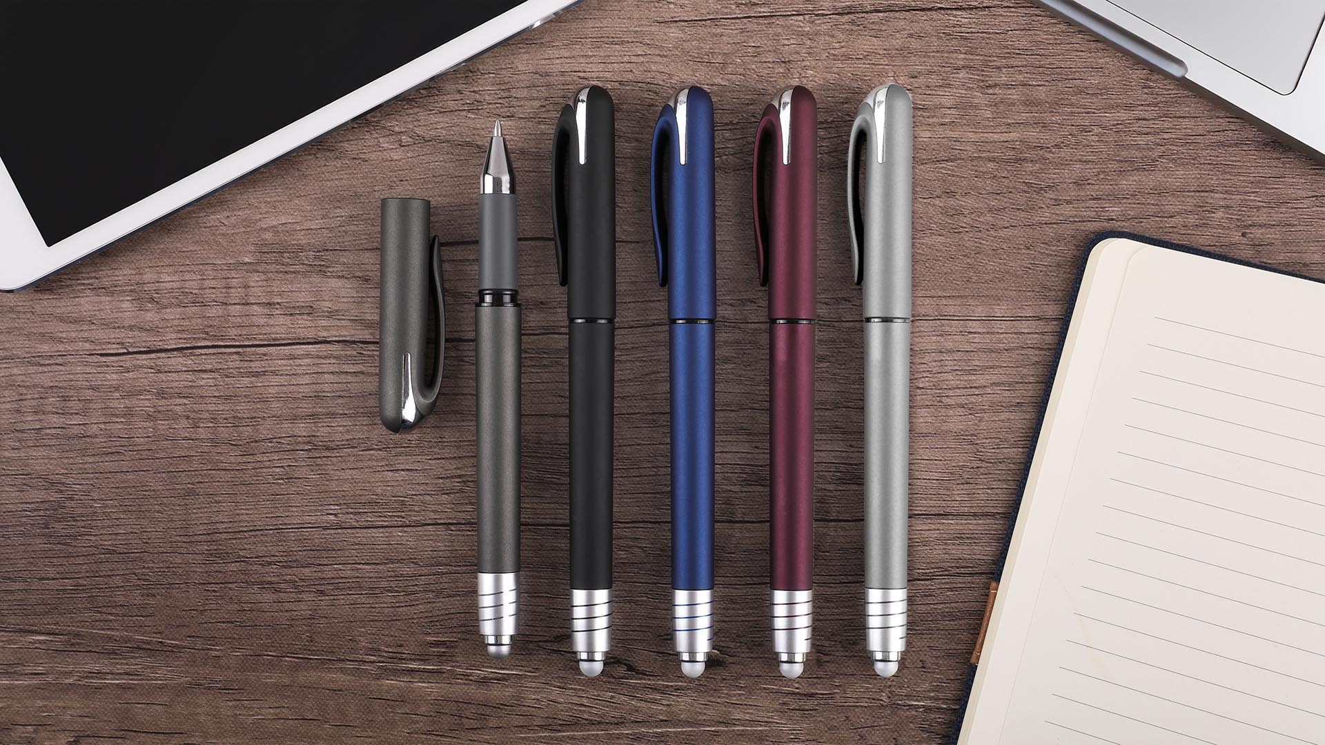 Bring fun, function, and premium writing performance together with the Pacifica Spin Top Stylus Gel Pen. Its unique cap-off spinner top adds a playful, stress-relieving touch, while the stylus tip on the opposite end offers smooth navigation on touchscreens. The velvet-touch finish feels great in hand, paired with a metallic-colored barrel and cap accented by sleek chrome details for a modern, stylish look. Featuring a black medium-point tip and high-quality gel ink, this pen delivers a smooth, consistent writing experience.