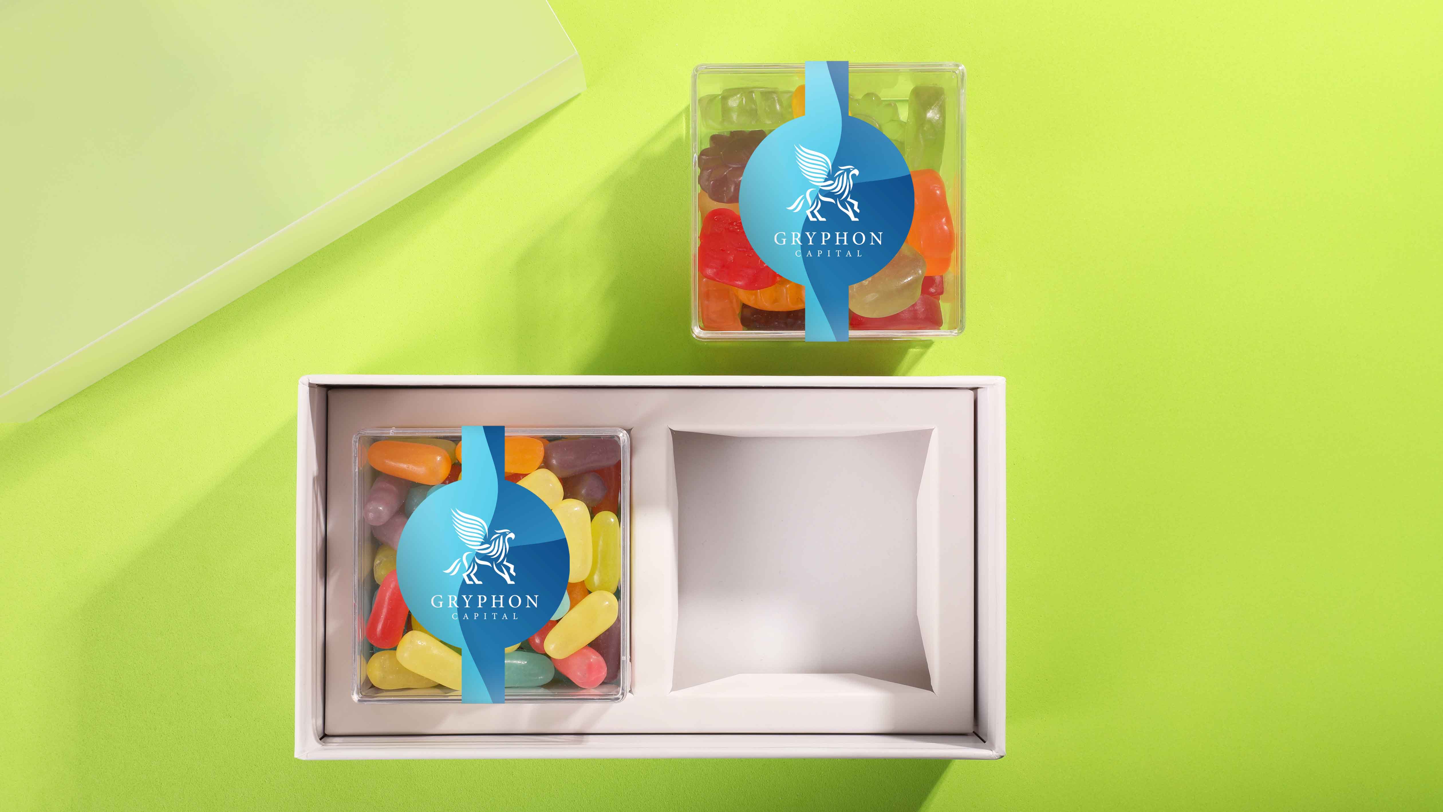 A gift that puts your brand front and center! The Sweet Duo Set includes two clear candy-filled cubes in a modern retail-style box with a clear sleeve for maximum impact. Choose from our curated collection of classic and crave-worthy candies.