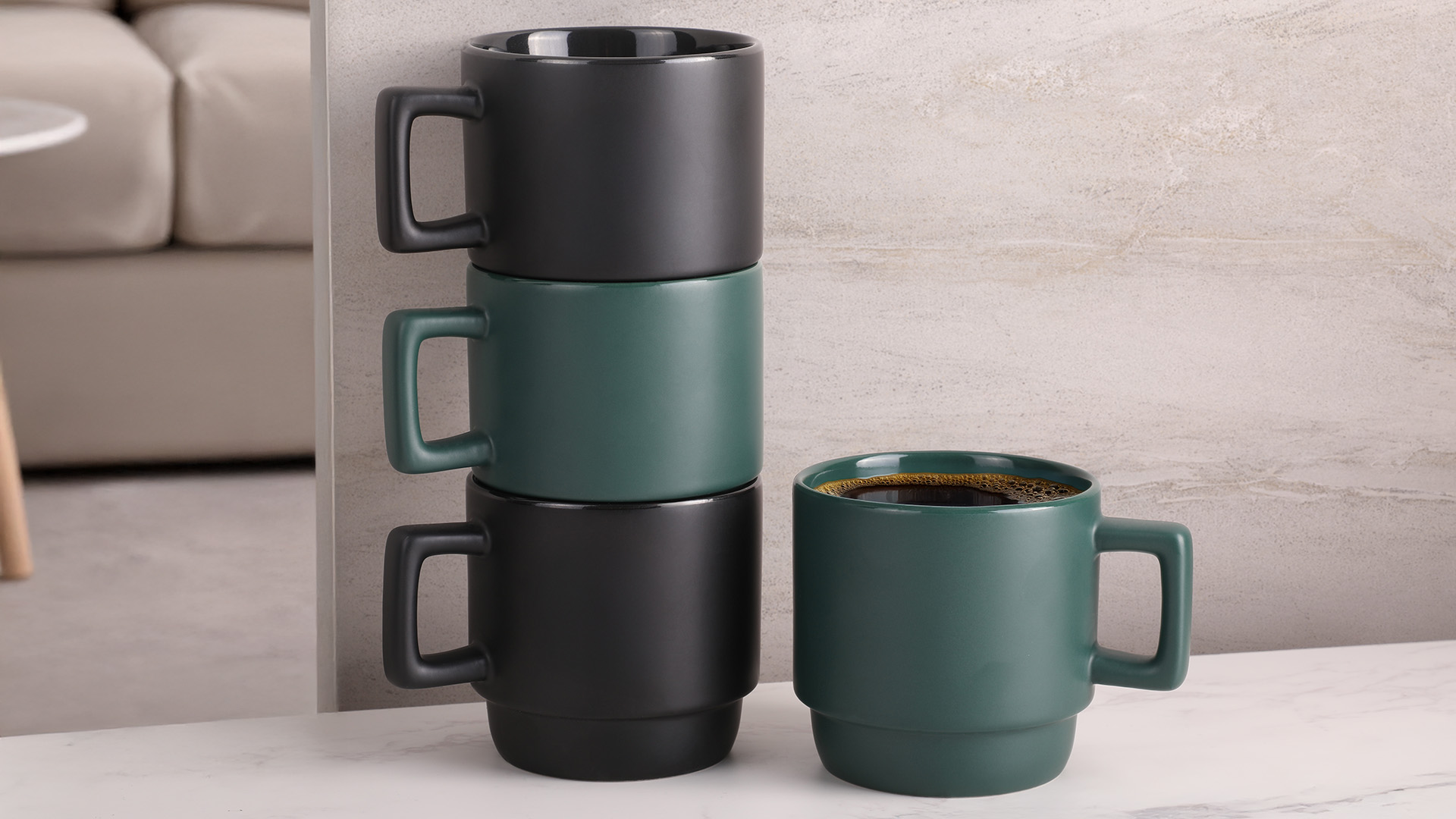 Bring modern style to your morning routine with the 11 oz. Ceramic Stacking Mug! Designed to stack neatly and save space, this mug combines everyday practicality with a touch of sophistication. Its matte finish and unique squared handle give it a clean, contemporary look that stands out on any desk or kitchen shelf. It's the perfect promotional pick for coffee shops, offices, or event giveaways that want to make an impression, one cup at a time.