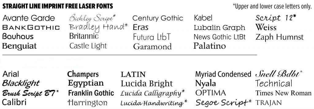 FREE laser fonts for straight line imprints on laser engraved metal pens: