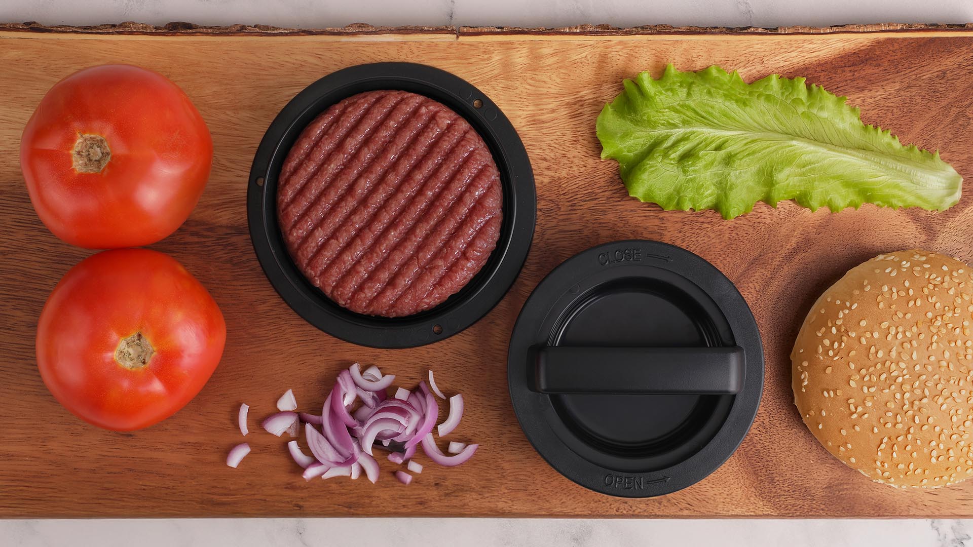 Craft perfect patties every time with this versatile burger press. Designed to create uniform stuffed or large burgers, it includes a detachable indent press for making a well to hold your favorite fillings. The large base is ideal for crafting oversized or stuffed patties, while the easy-release removable bottom ensures the patty slides out effortlessly. Wash with soap and water or simply place in the dishwasher to clean. Made from durable, food-safe materials. Meets FDA requirements. A must-have for grilling season!