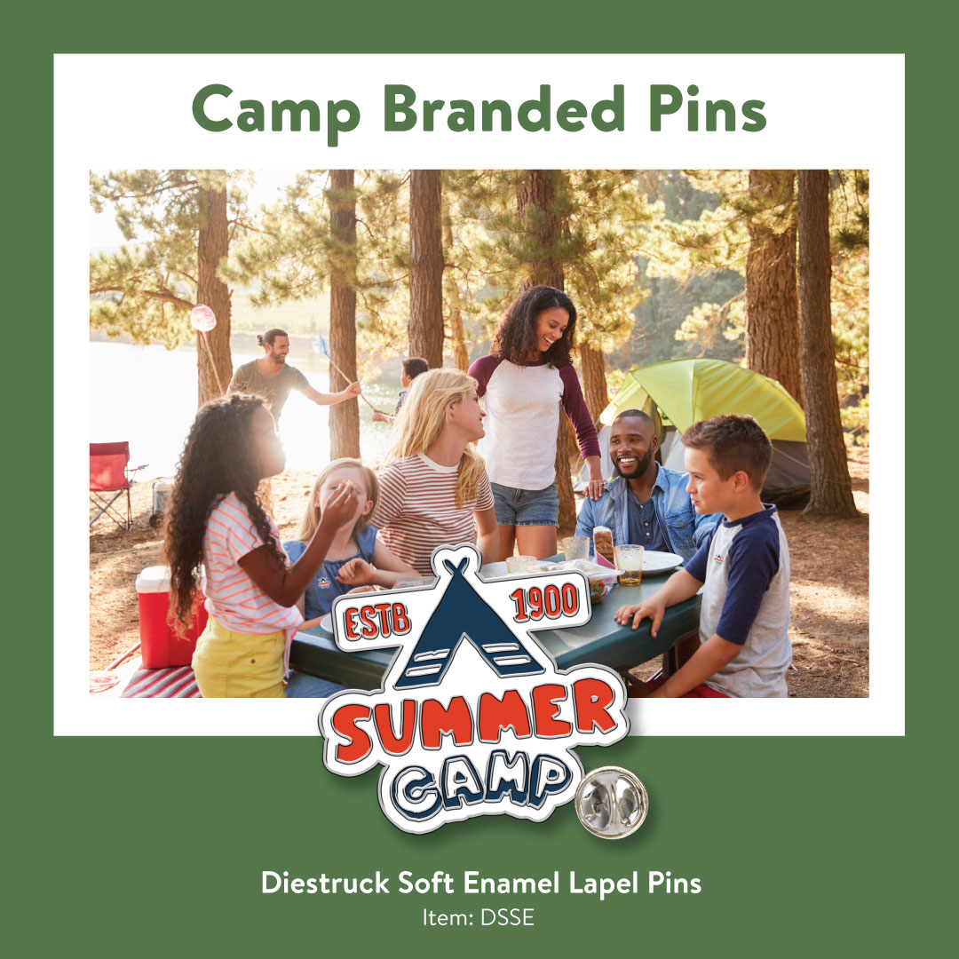 Create brand ambassadors out of camp attendees with a custom lapel pin. Gain thousands of impressions as the wearer shows off your pin on their everyday adventures after they leave camp. Our pins can be completely customized. Create your own shape, colors, finishes, and you can even add glitter! Camp pins can stay the same year after year or you can switch it up and have them creating their own camp pin collection year after year. Lapel pins are perfect for campers, staff members, board members, and even alumni. Create brand ambassadors in all age groups with a custom camp lapel pin.