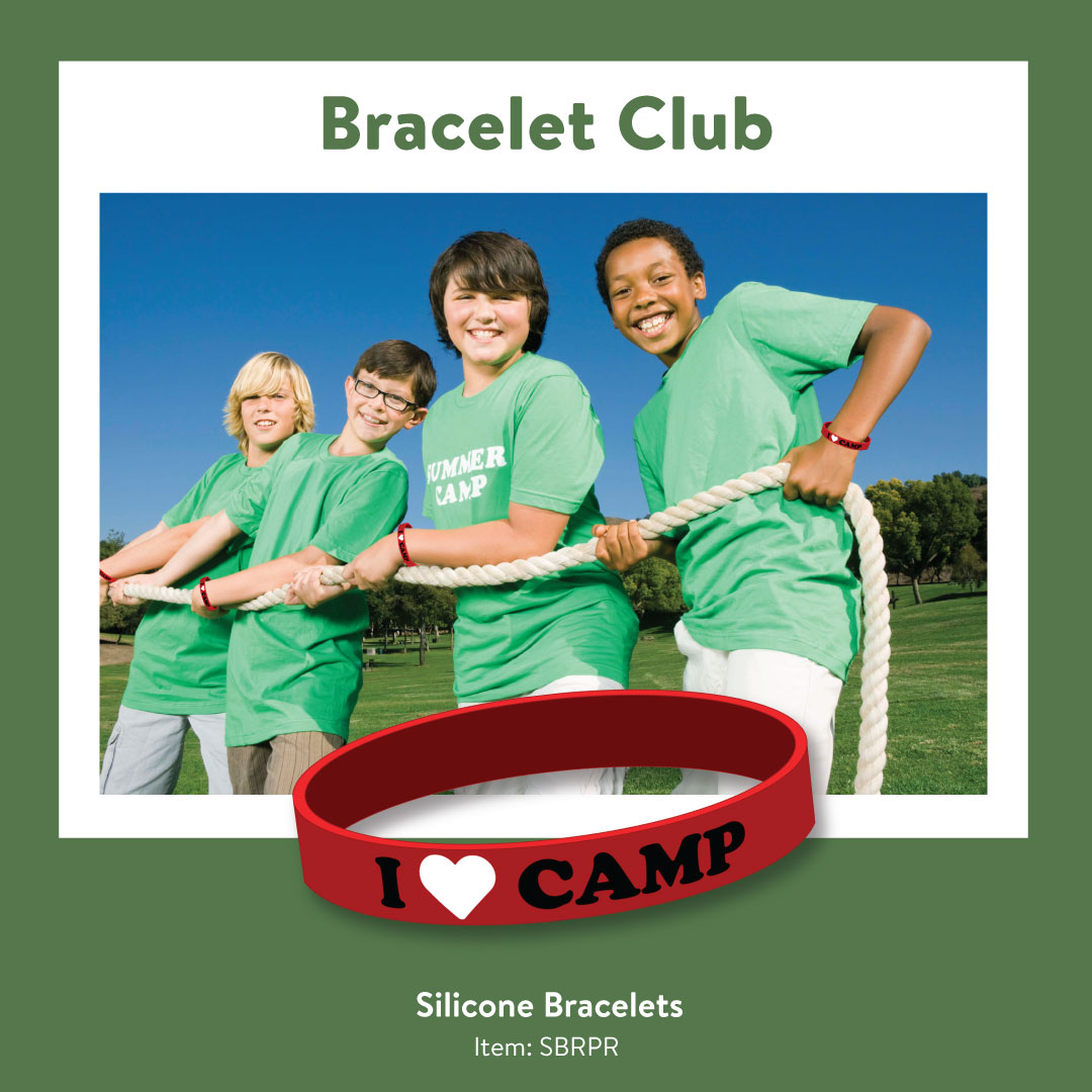 The friendship bracelet is an iconic camp tradition. Give them a cherished camp memory they will share with their exclusive new camp buddies. Brand them by activities, cabin groups, or staff divisions and make them feel like a cherished member of an exclusive club. Silicone bracelets are also water proof making them perfect for identifying varying levels of swimming skill making it easy and safe for staff members to identify who can participate in what camp activities.